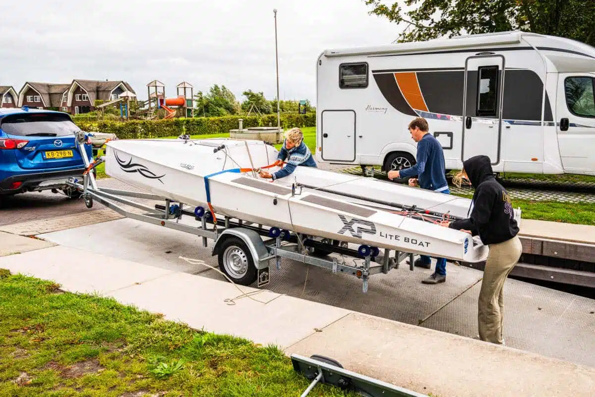 Remorque spécialisée pour transporter le bateau en toute sécurité vers les sites d'entraînement.